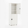 Многофункциональная сервисная тележка с тремя полками, оборудованными торцевыми ограждениями, а под верхней находится выдвижной ящик на шариковых телескопических направляющих с доводчиками. Высокий мягкий мешок-контейнер из крупнотканного полиэстера с резиновым накатом с изнаночной стороны, который можно снять с тележки, освободив высокое транспортировочное место. Технические свойства тележки обеспечивают многогранную сферу применения для этого сервисного устройства